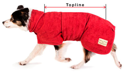 För att bestämma rätt storlek för din hund, mät "Topline" från skulderbladen till svansroten, samt hundens vikt - och se i tabellerna nedan.